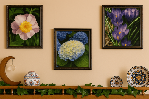 ![]() Finished Project. "Pretty Peony", "Breathtaking Blue Hydrangea" and "Crocus Beauties" Mary F. |